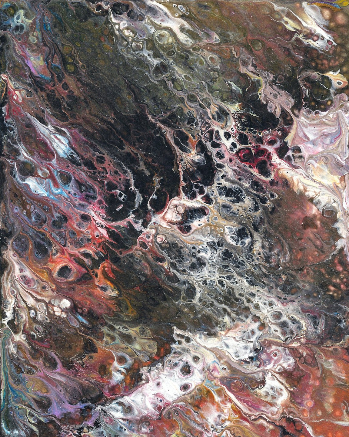 Mauricio’s paintings reveal deep societal truths, using vibrant colors and metallic textures to captivate and provoke thought.